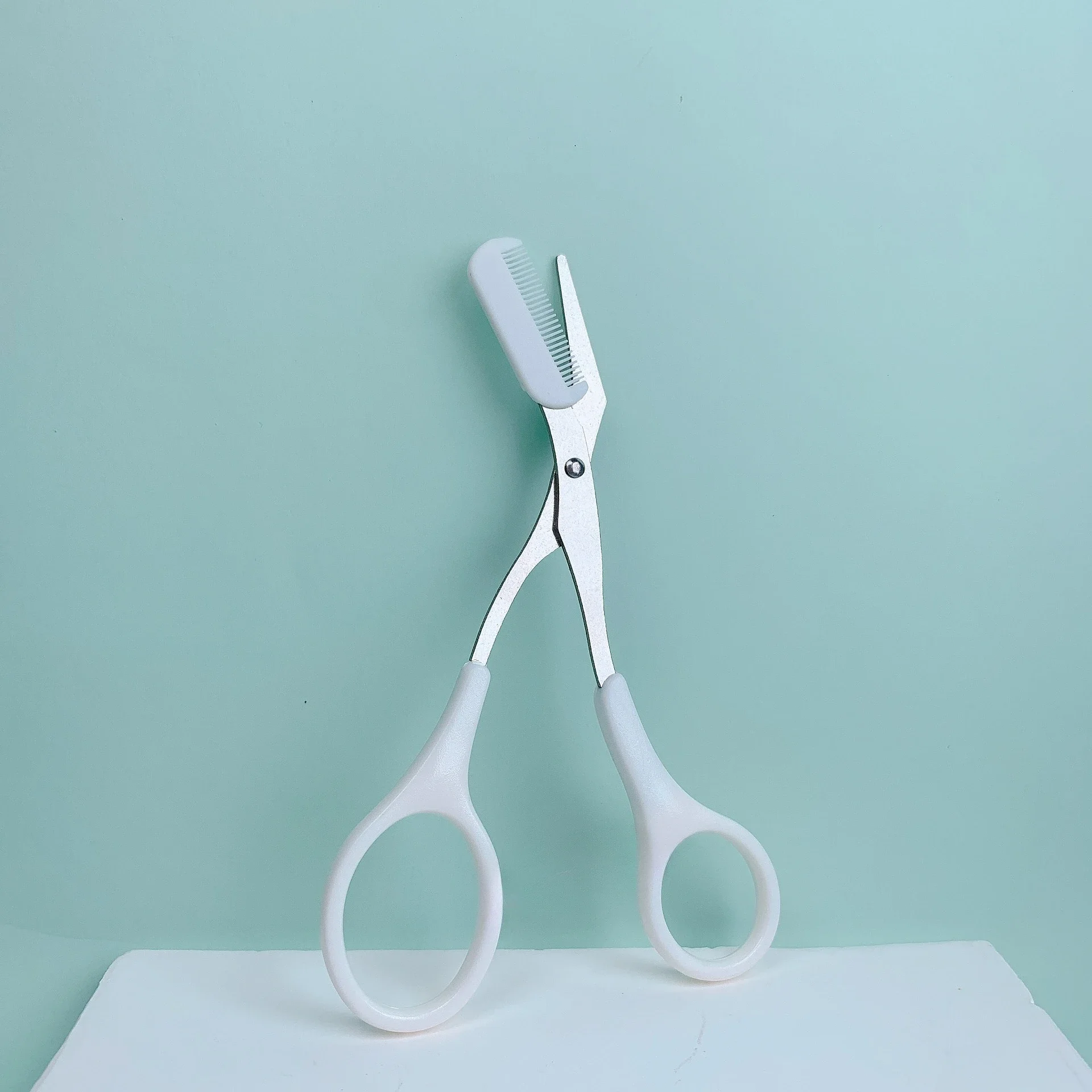 1 Pcs Pink Eyebrow Trimming Scissors with Built-in Comb – Stainless Steel, Precise Grooming Tool, Creating Perfect Eyebrows