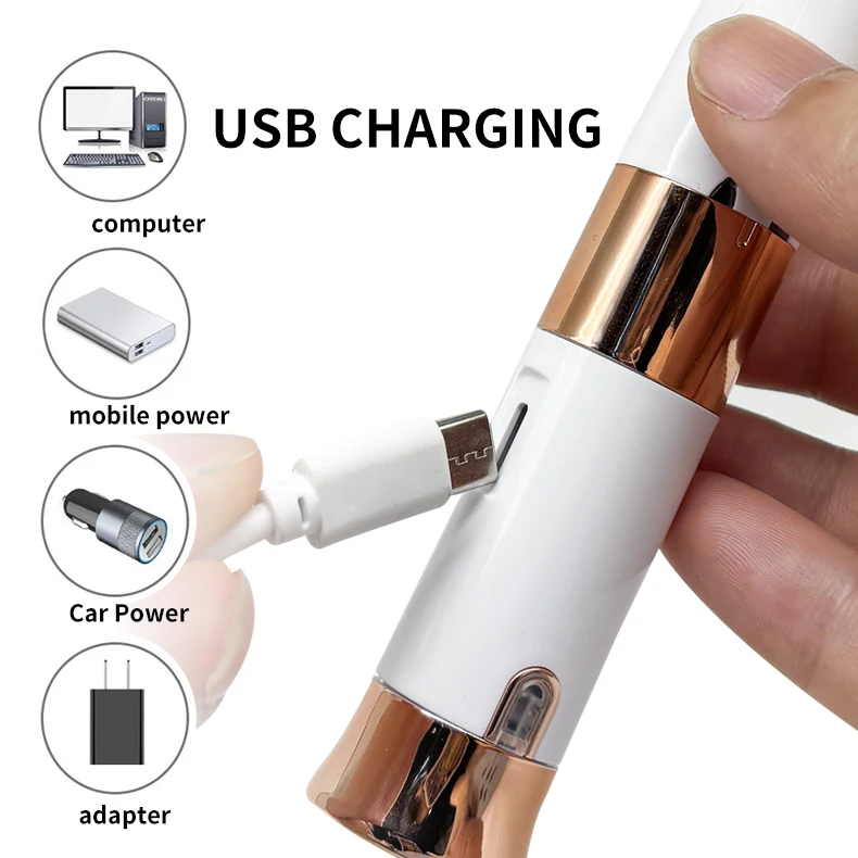 2 IN 1 Rechargeable Epilator Electric Eyebrow Trimmer Female Body Facial Lipstick Shape Hair Removal Mini Painless Razor Shaver