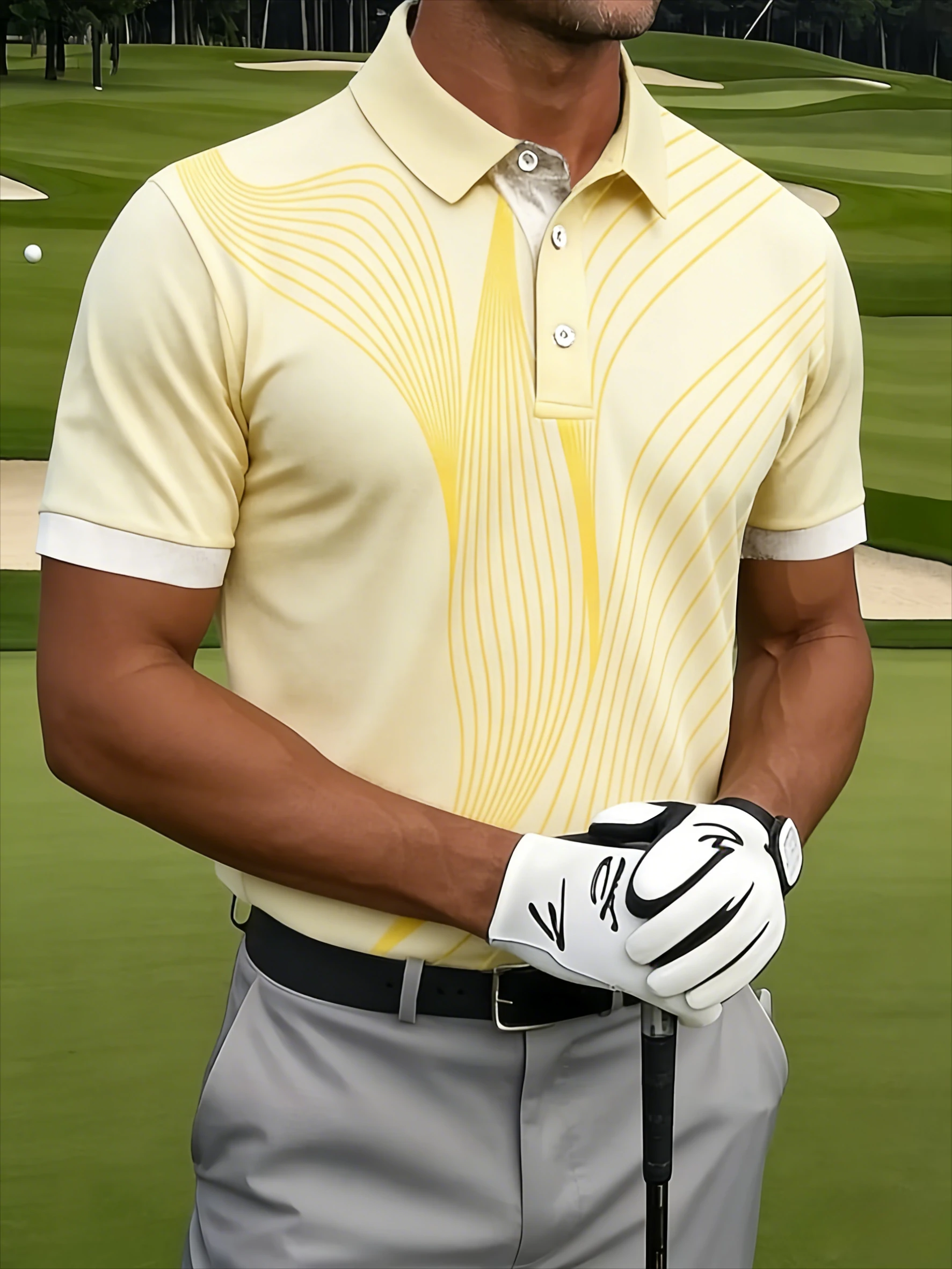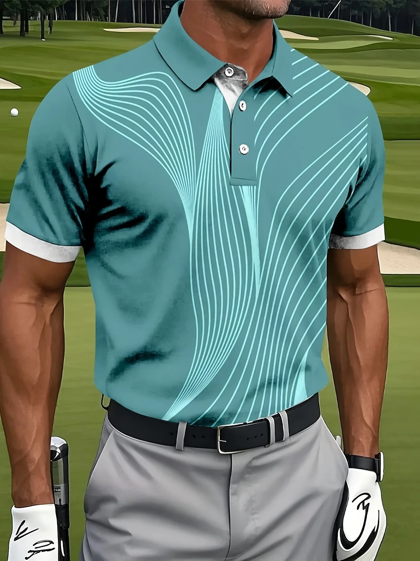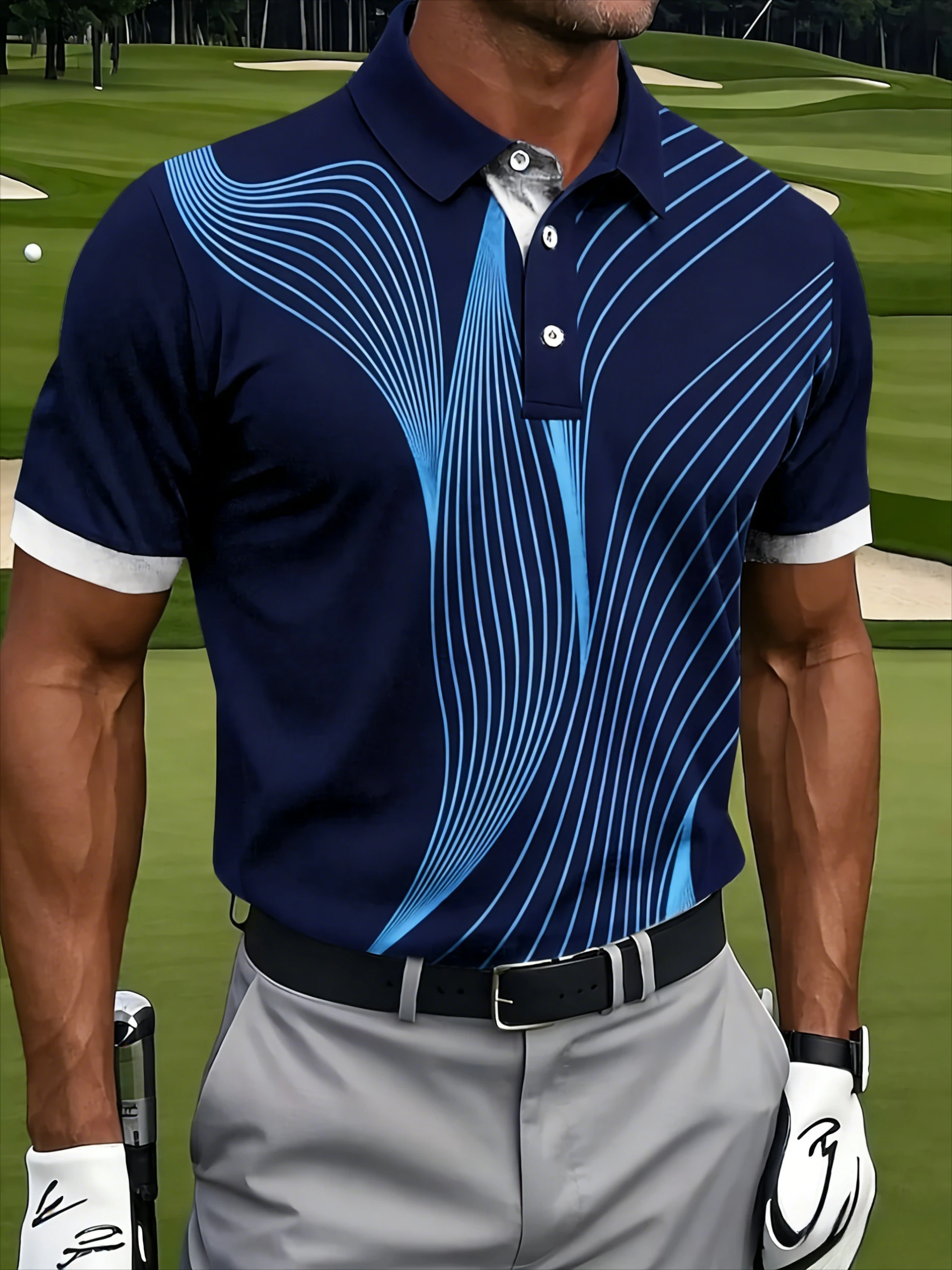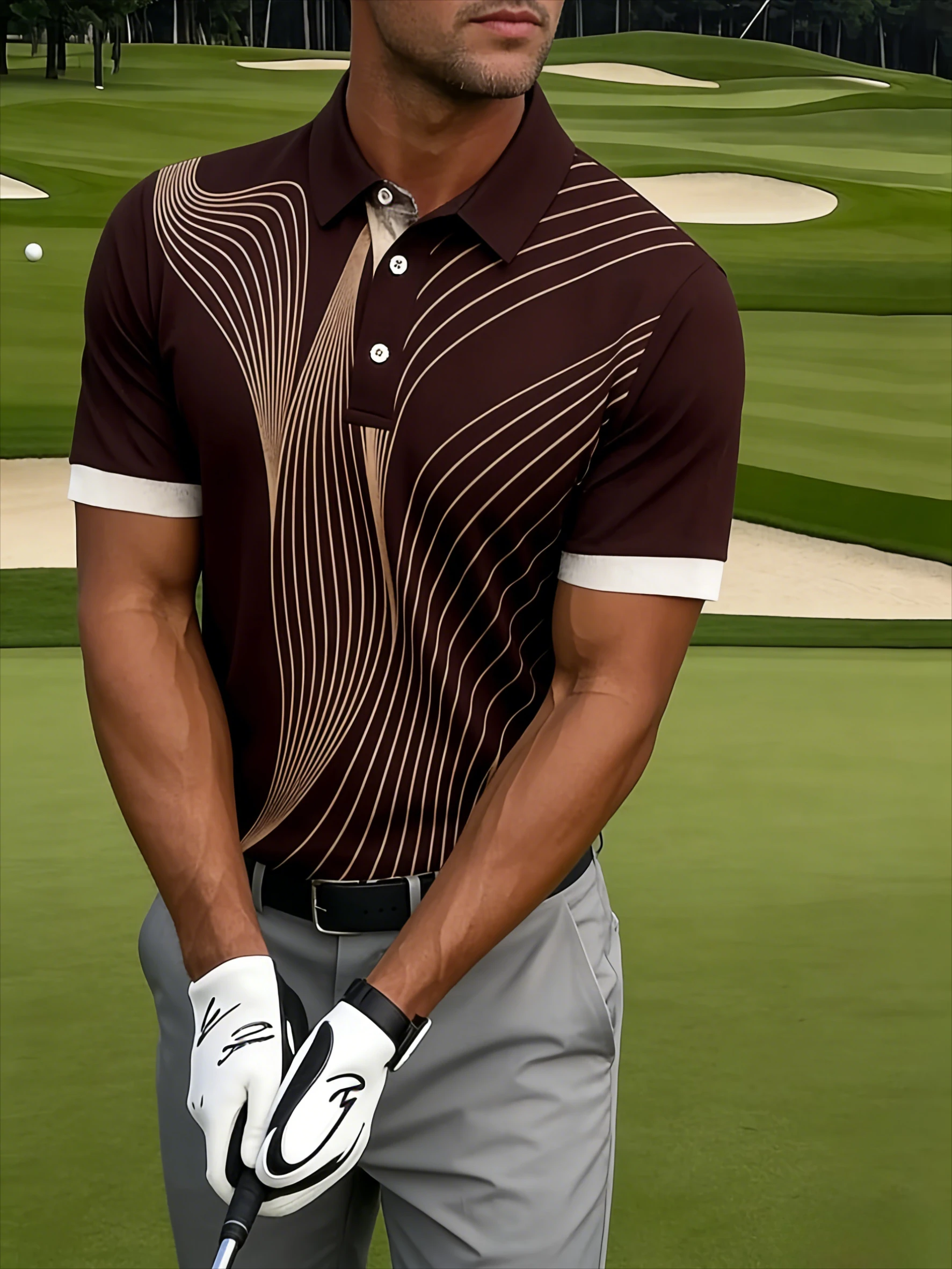 2026 Latest Style Dynamic Streamline Printed Men’s Short-Sleeved Shirt Golf Casual Collar Top