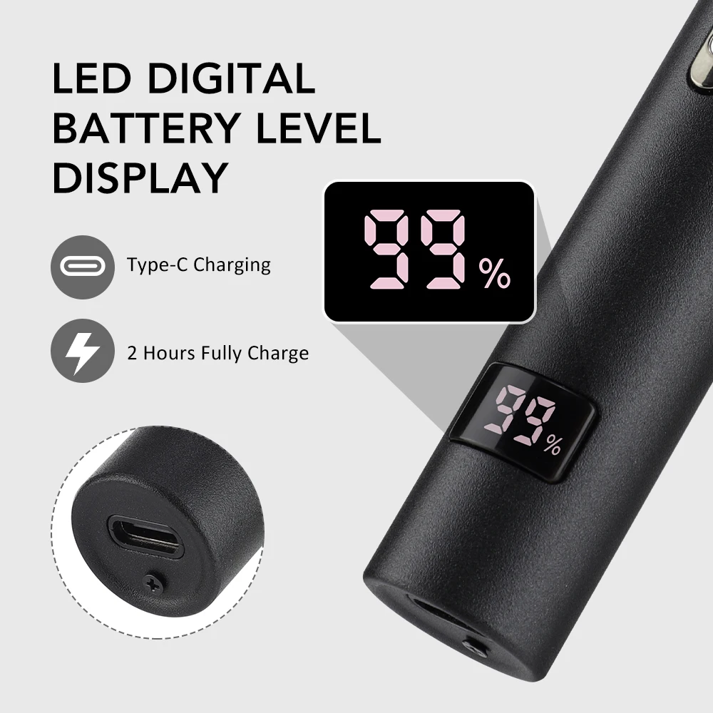 4. The facial hair shaver offers extended cordless use with Type-C fast charging and features an intuitive battery level display for easy power status monitoring.