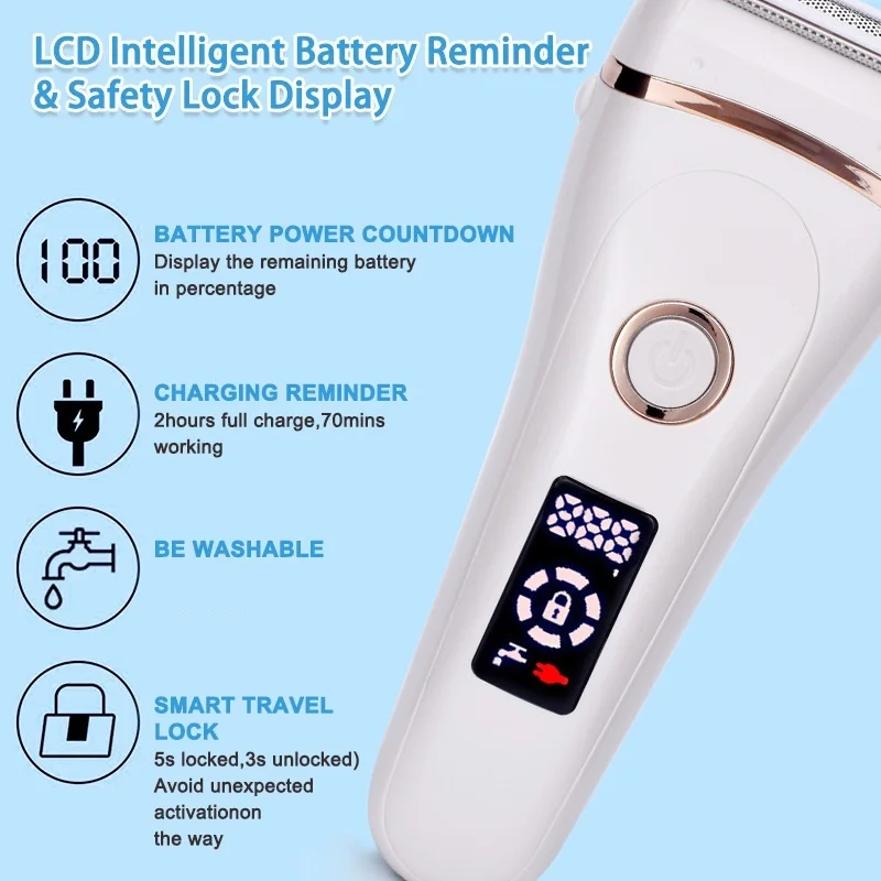 Electric Shaver Electric Epilator Device Women Hair Removal Epilator Private Parts Underarm Facial Hair Removal IPX7 Waterproof