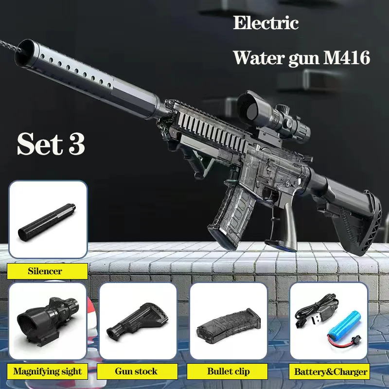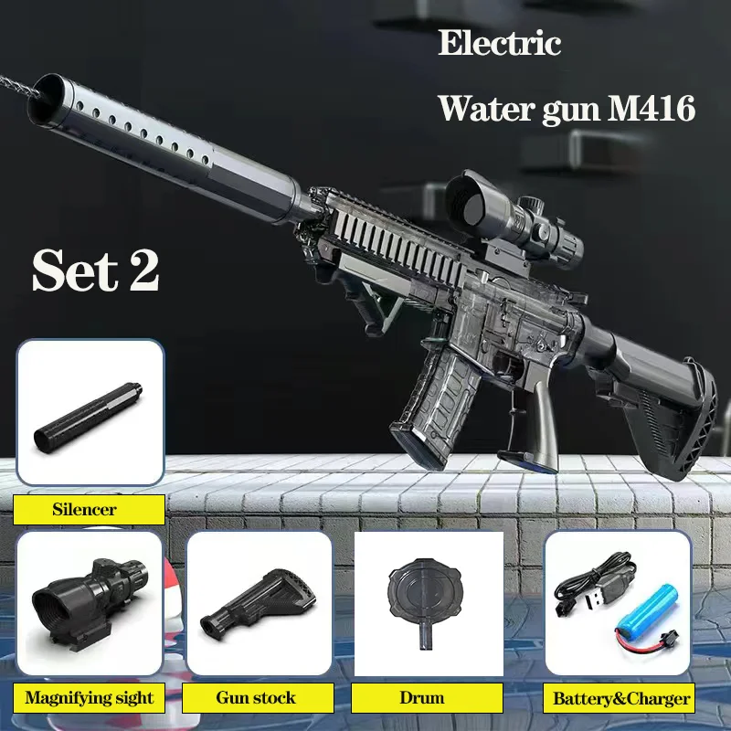 M416 Electric Water Gun Pistol Shooting Toy Full Automatic Summer Shoot Beach Outdoor Fun Toy For Children Boys Girl Adults Gift