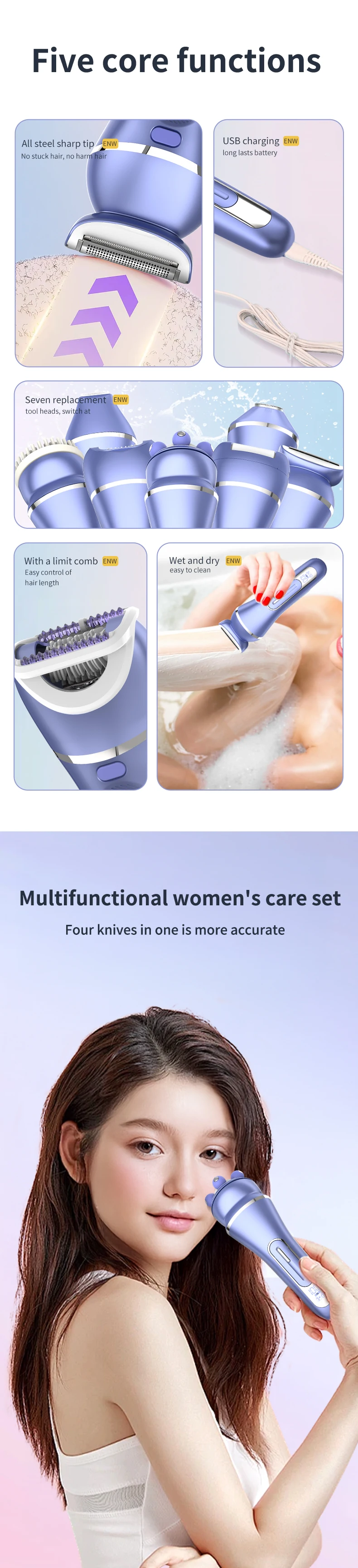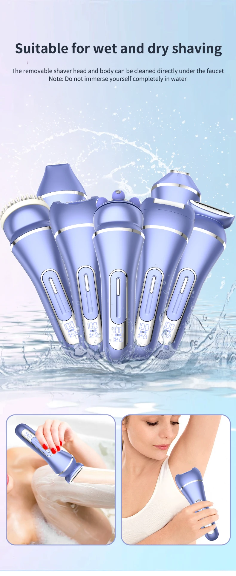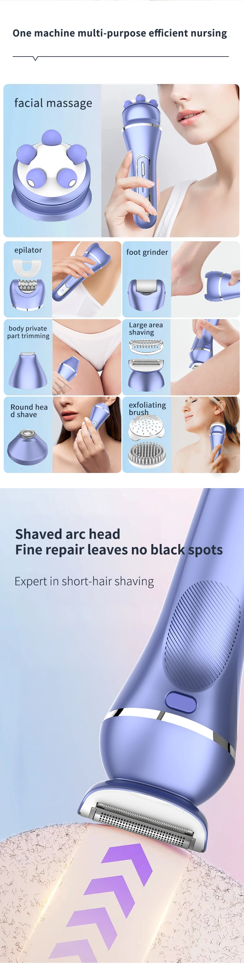 Packaging: Host+hair removal blade+shaving blade+cleansing brush+foot grinder+massage head+lip shaving blade+USB charging cable+cleaning brush