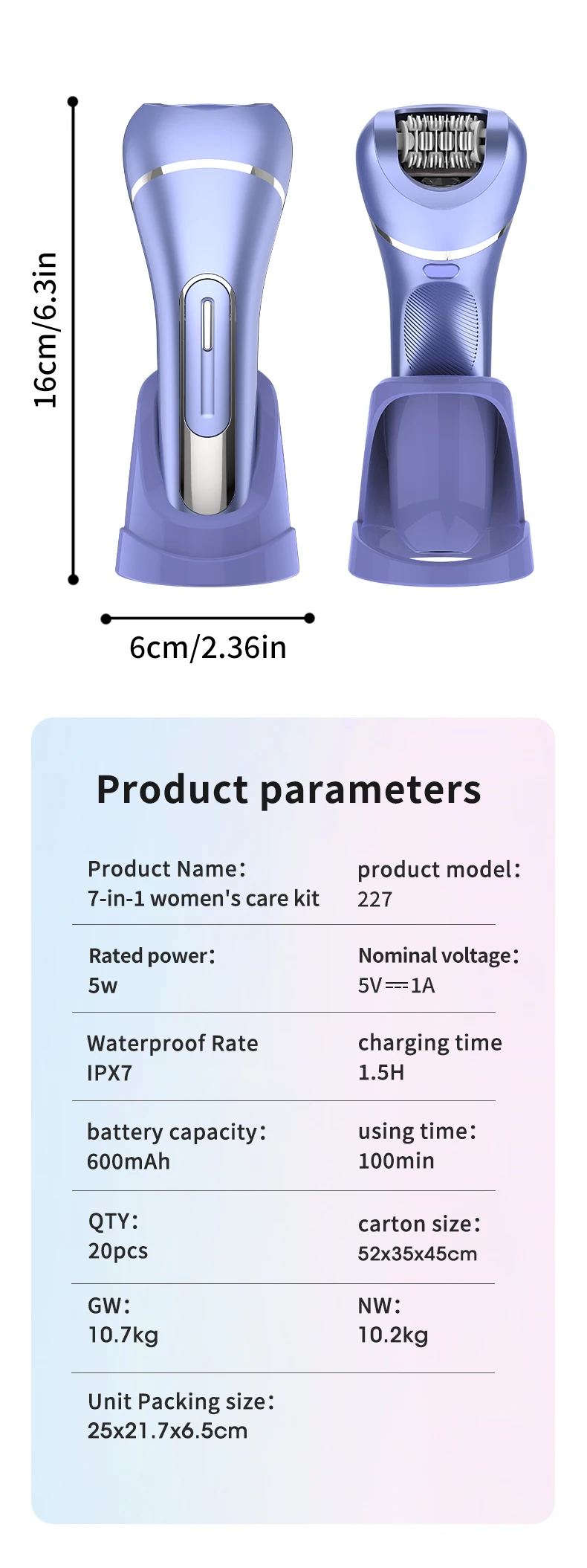RESUXI 227 Women’s 7-in-1 Multifunction Electric Epilator Shaver Bikini Legs Underarm Public Trimmer with Charging Base