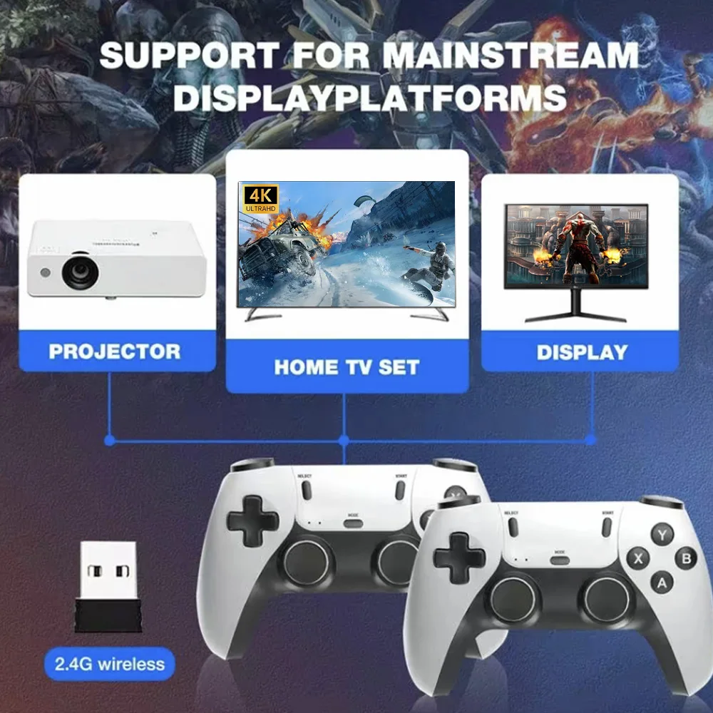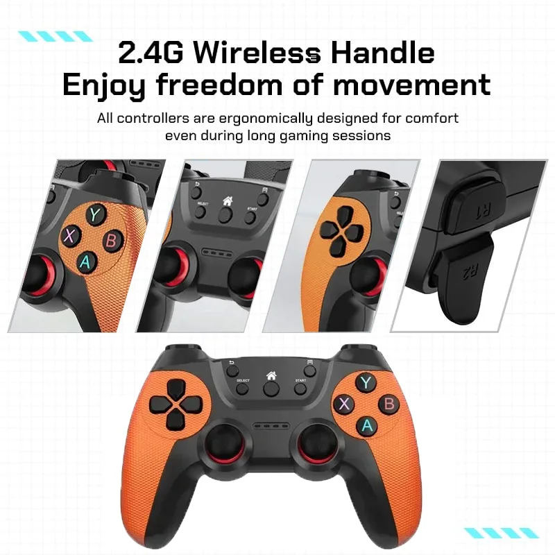 * Wireless Controller: 2.4G Wireless Controller Support 1-2 Player, Get rid of the limitation of the cable and play freely
