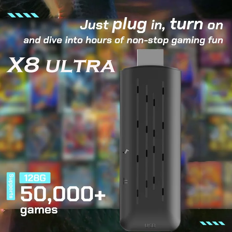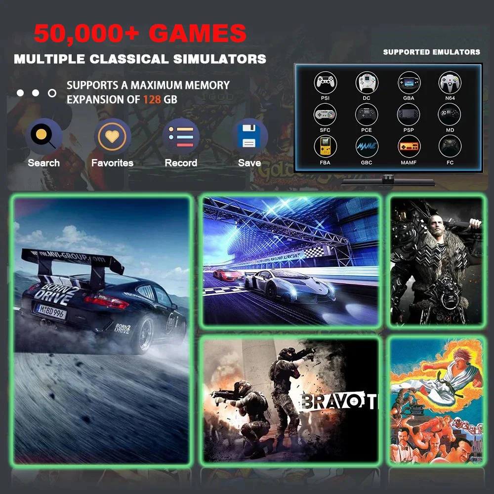 X8 ULTRA retro game console comes with 50,000 built-in games and 45 emulators, and is compatible with PS1/N64/PSP.